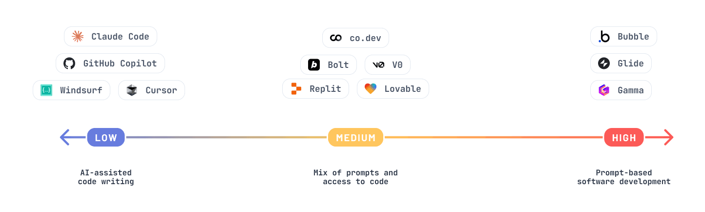 讓我們仔細看看這些抽象級別,以及如何定位最流行的 AI 軟體開發工具。