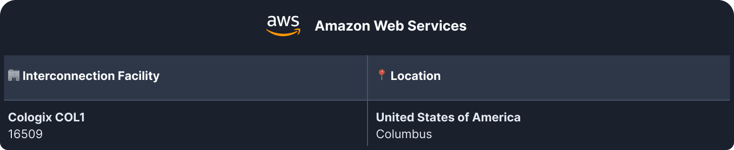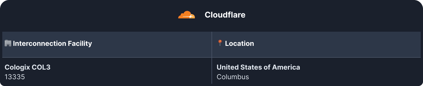 Cloudflare 在哥倫布也有一個 PoP,但它在不同的 Cologix 設施進行對等互聯,導致額外的網路跳數。