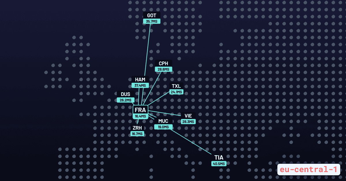 在 Prisma,我們運營的服務覆蓋了中國以外的大部分 AWS 區域和所有 Cloudflare PoP。因此,我們擁有大量的 Cloudflare 和 AWS 之間請求的延遲資料。X 上的這個問題促使我們開始在每年的雲連線報告中釋出這些資料。