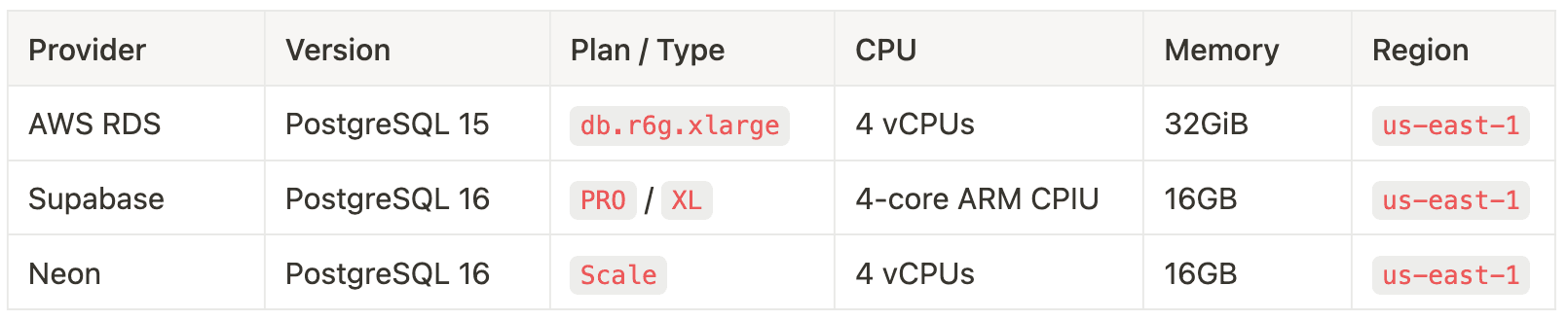 更多資訊,請務必訪問基準測試網站以檢查我們的結果,或使用您選擇的資料庫提供商自行執行基準測試。