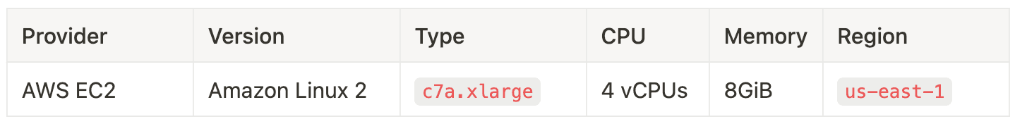 為了收集資料,我們在生產基礎設施上執行了基準測試,以模擬實際使用場景。指令碼已在具有此規格的 EC2 例項上執行
