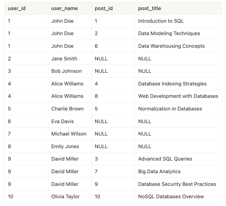 在使用資料庫層面的 JOIN 時,有多種構建 SQL 查詢的選項。讓我們考慮上面 Prisma schema 的 SQL 表定義