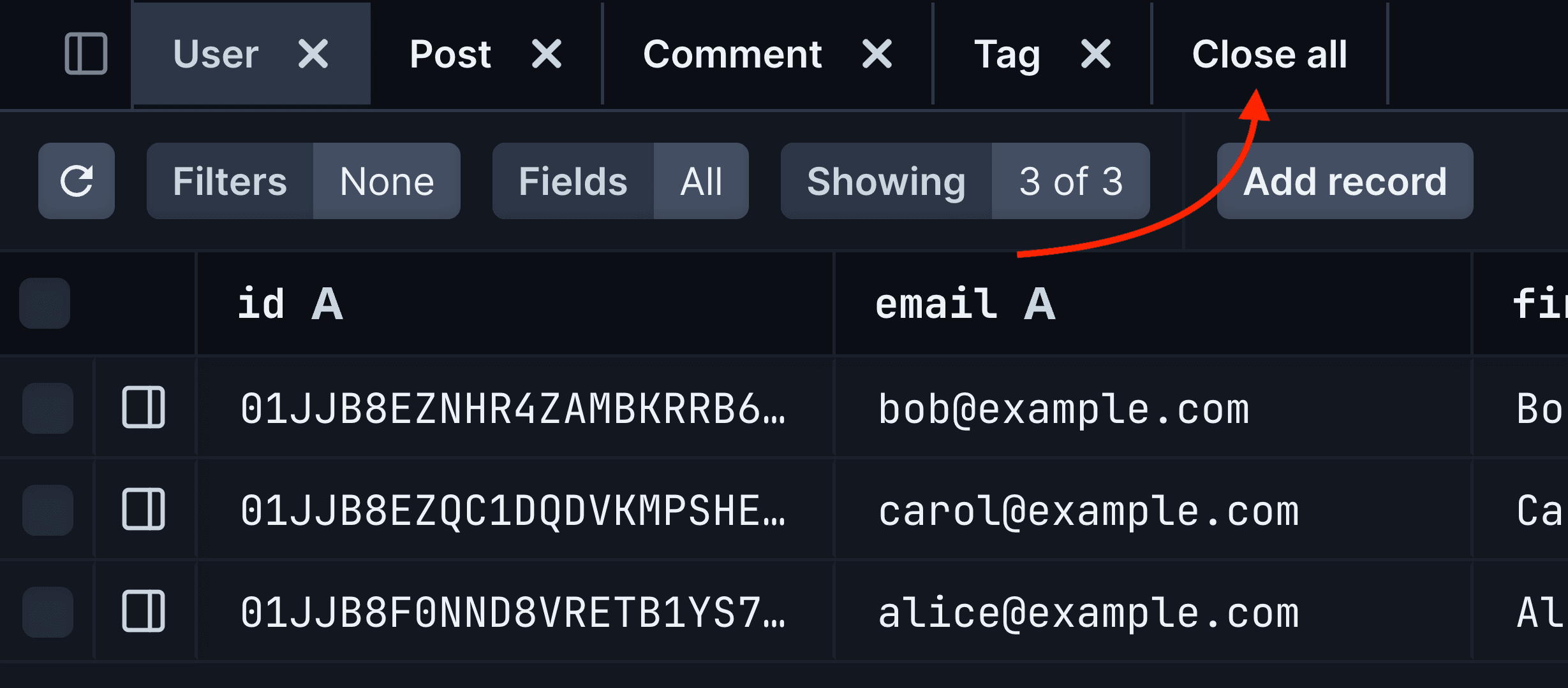 您的 Prisma Studio 會話很可能像您的瀏覽器一樣打開了許多標籤頁。逐一關閉它們很麻煩。