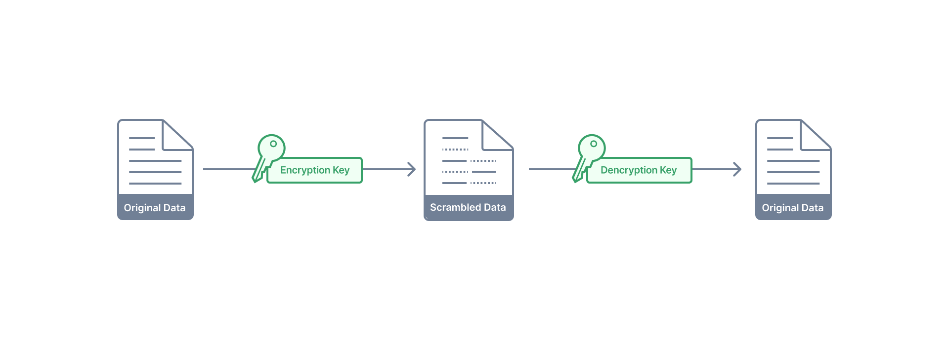 加密最基本的工作原理是加密器用其他字元替換字母、數字和符號,以建立密碼。對於非密碼學家或黃道十二宮的粉絲來說,密碼是代表原始訊息的字元集,在此案例中,是原始資料。此密碼的建立者持有加密金鑰,該數字描述了編碼密碼的方法。現代加密比簡單的字元交換複雜得多。大多數現代實現會將明文轉換為由文字、影像和二進位制大物件形式的位元組塊或位元組流組成的密文。如果沒有此金鑰,計算機或人無法讀取實際資料,任何未經授權的資料也無法正確呈現。