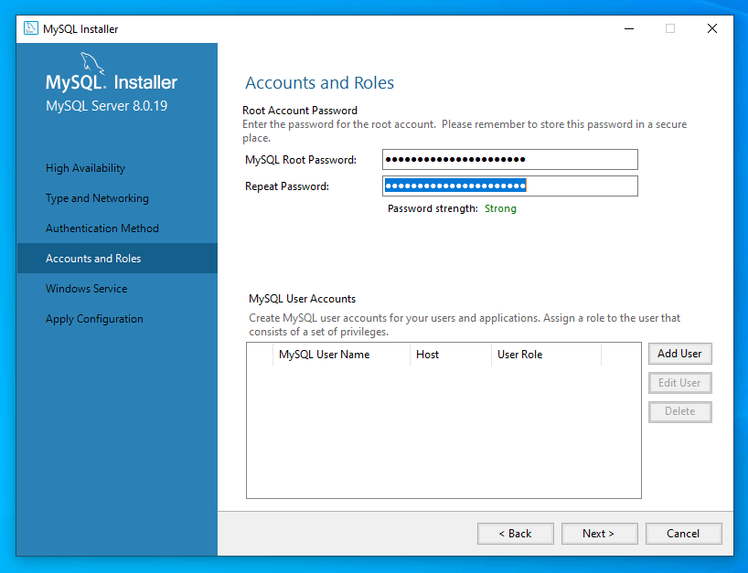 安裝完成後,安裝程式會提示您配置新的 MySQL 伺服器