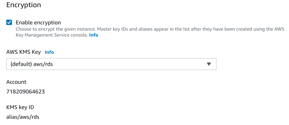 同樣,您可以將此加密的預設 AWS KMS 金鑰保持選中狀態,除非您有特殊要求。