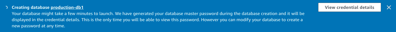 如果您配置了 AWS 自動生成密碼,您將在螢幕頂部看到類似這樣的通知